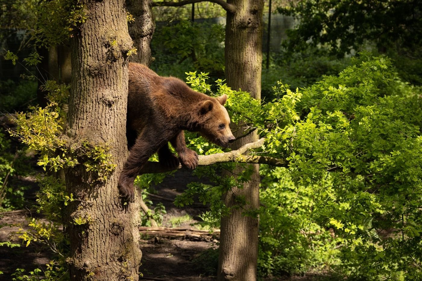 Our four bears are brothers Neo and Nilas, and brother and sister Albie and Gemini. They live in Bear Wood alongside our wolves, lynxes and wolverines. Once found roaming British woodland 10,000 years ago, brown bears no longer exist in Britain.