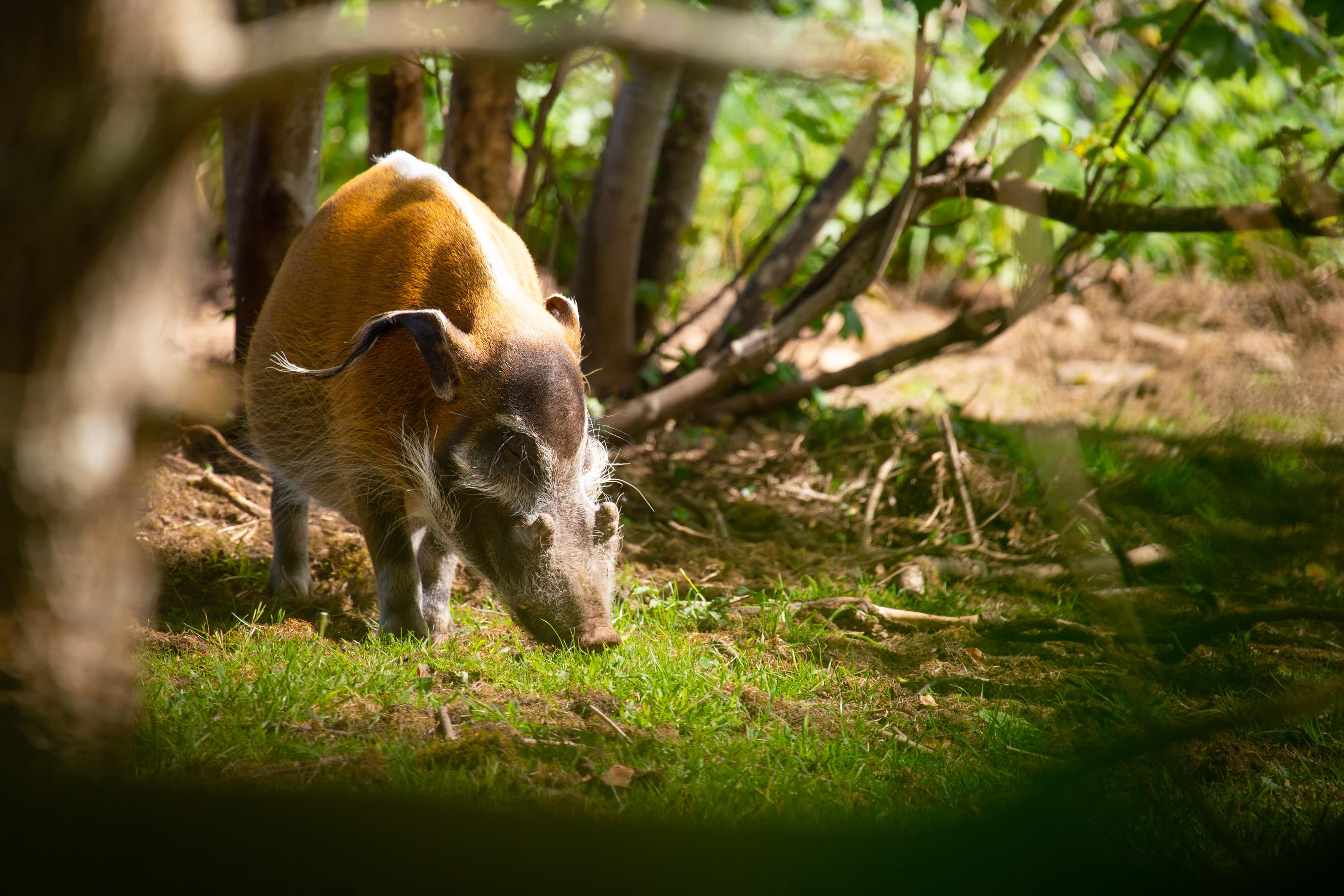 Our red river hogs have a large habitat at Bristol Zoo Project with lots of shrubbery and tree roots to rummage around in and provide natural enrichment.